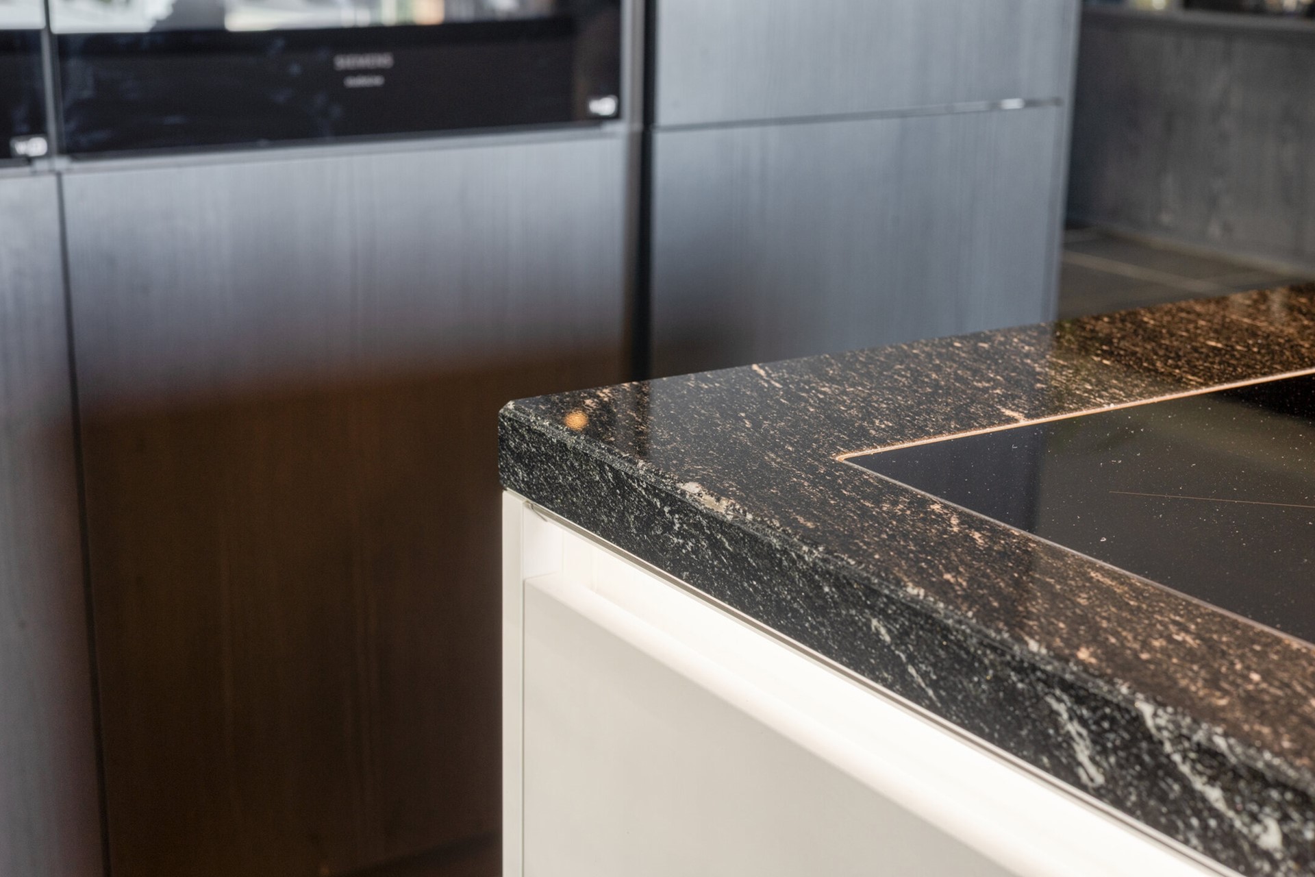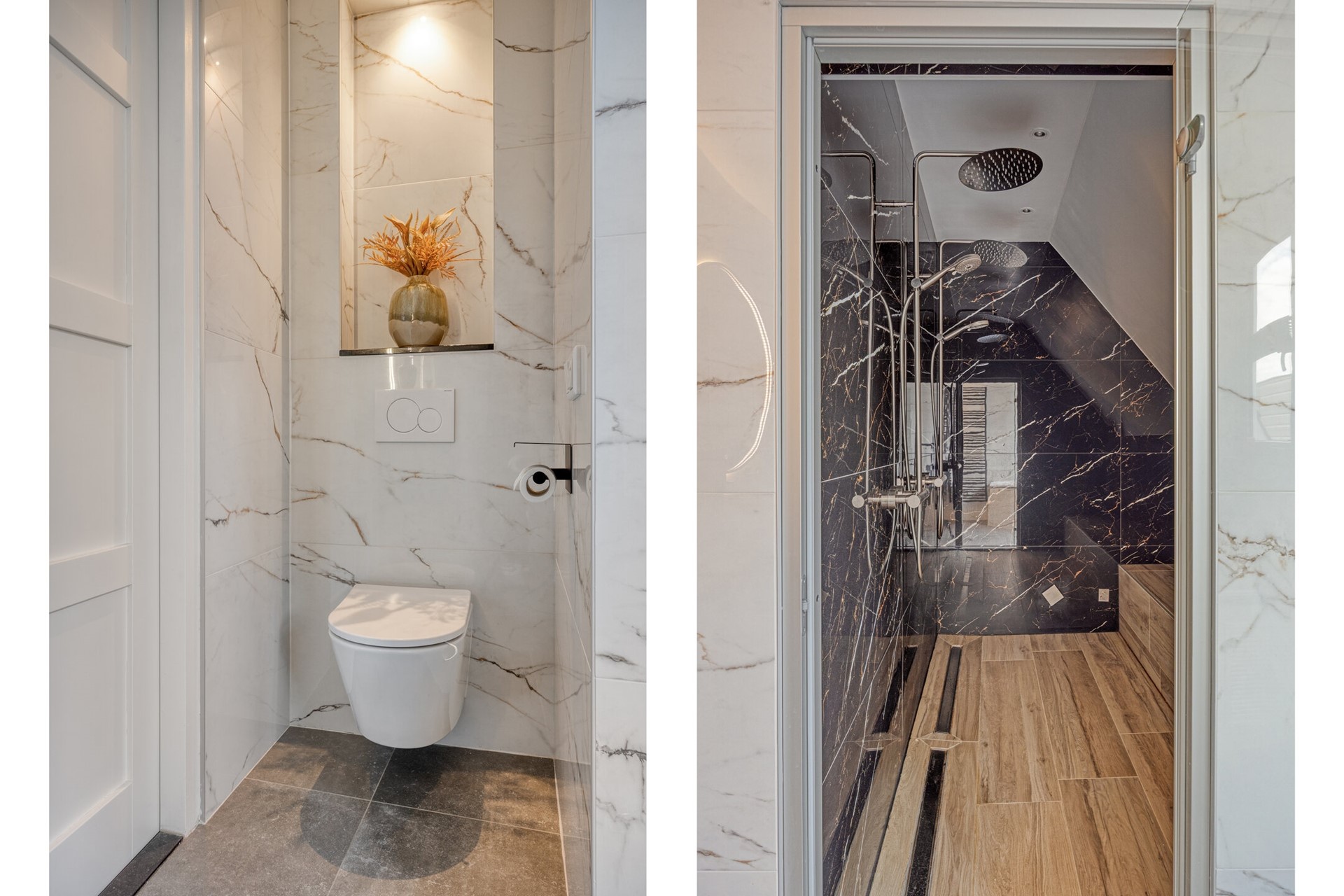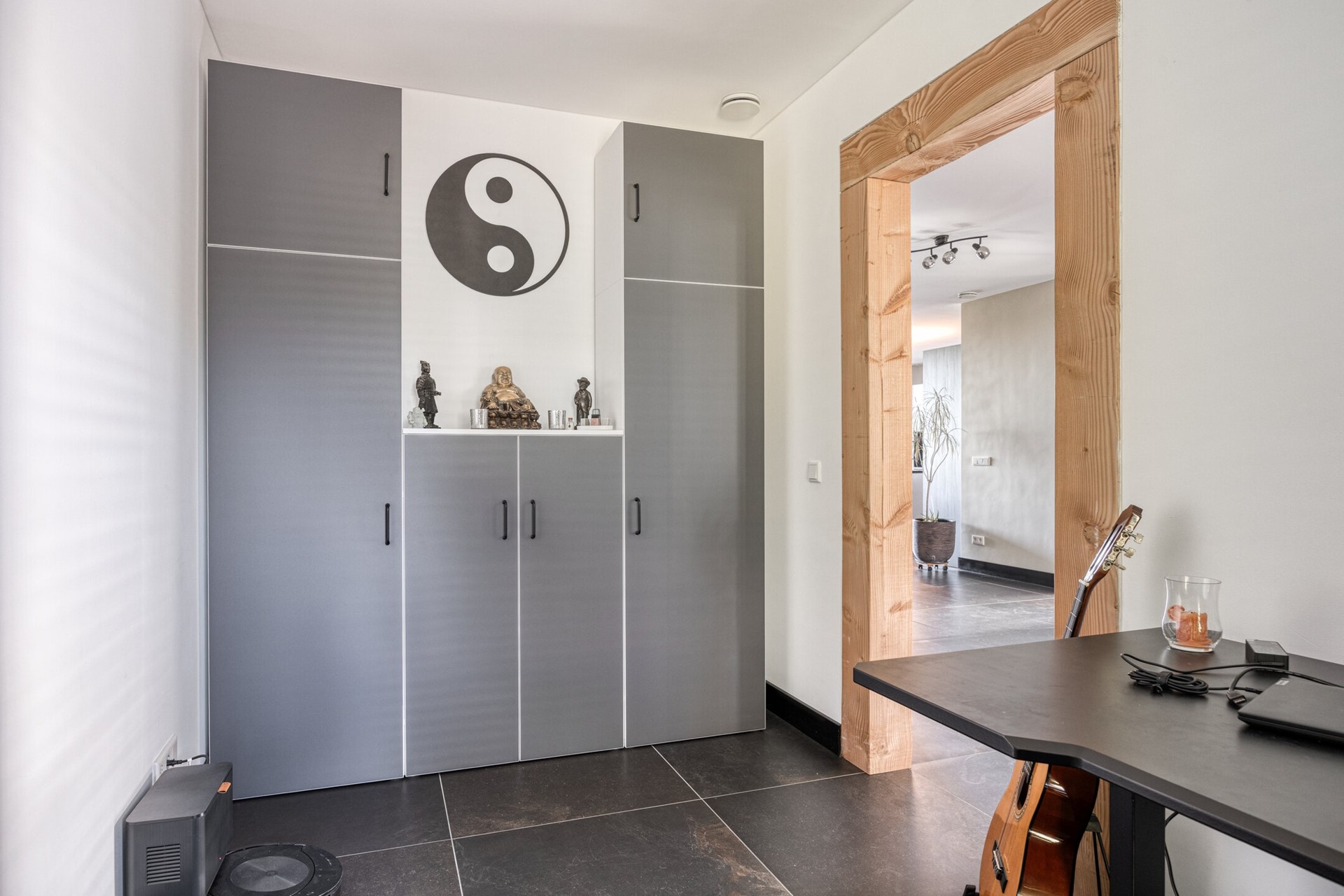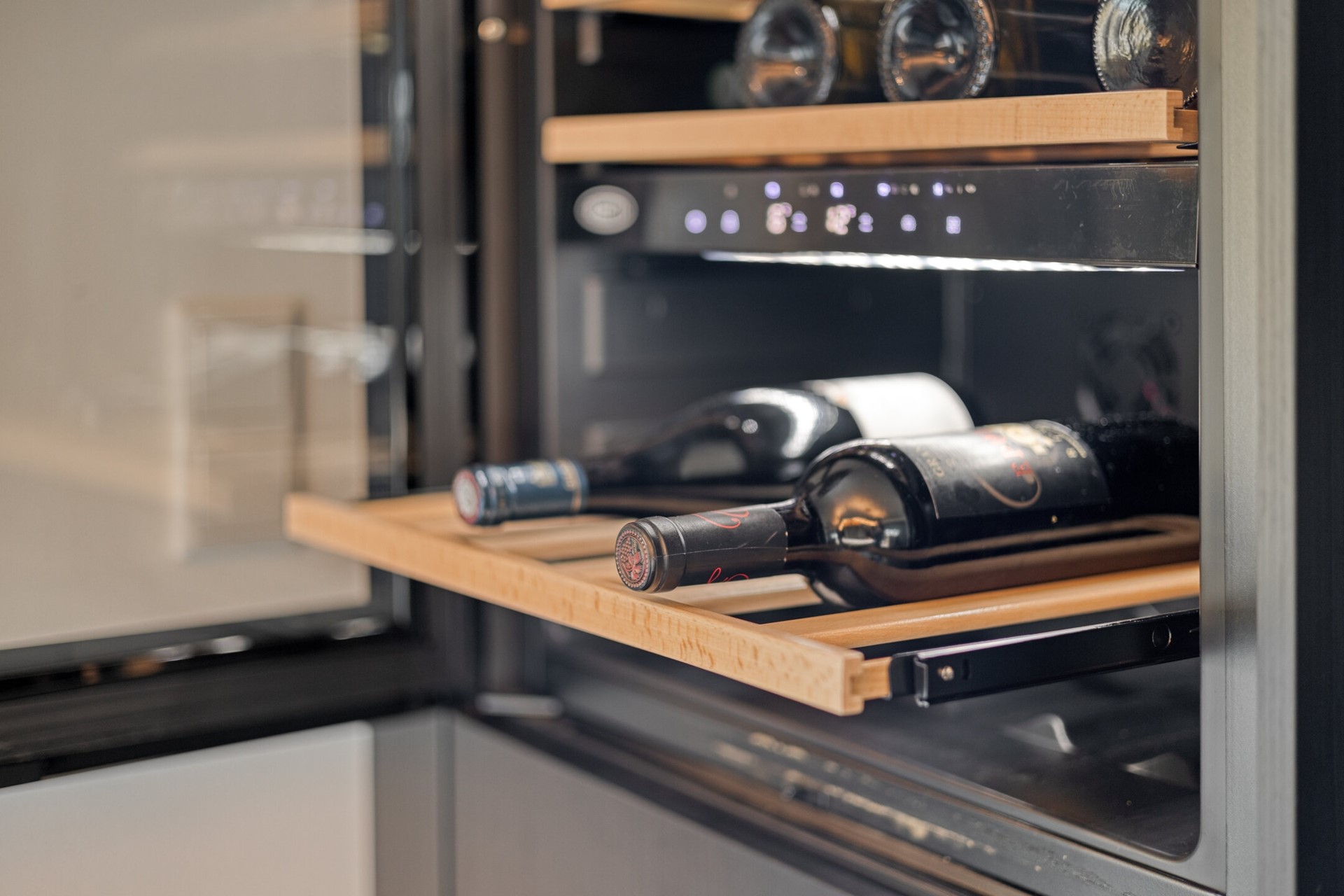De keuken is er eentje voor fanatieke thuiskoks. Hier tref je werkelijk alles: een Bora Classic 2.0 dubbele inductiekookplaat en geïntegreerde inductiewok, twee moderne koel/vriescombinaties, een Siemens stoomoven én magnetron, een Quooker kraan, Siemens vaatwasser. De keuken is hoogwaardig afgewerkt met sfeervolle onderverlichting onder het granieten aanrechtblad en als kers op de taart een Boretti wijnklimaatkast. Perfect voor etentjes met vrienden of familie. In de naastgelegen bijkeuken zit je witgoed trouwens op fijne hoogte weggewerkt.